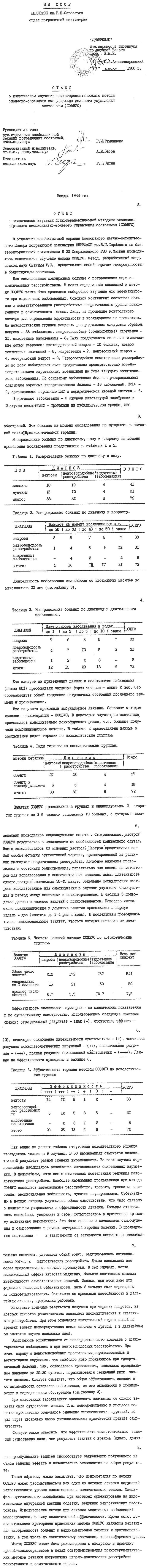 Отчет о клиническом изучении психотерапевтического метода словесно-образного эмоционально-волевого управления состоянием