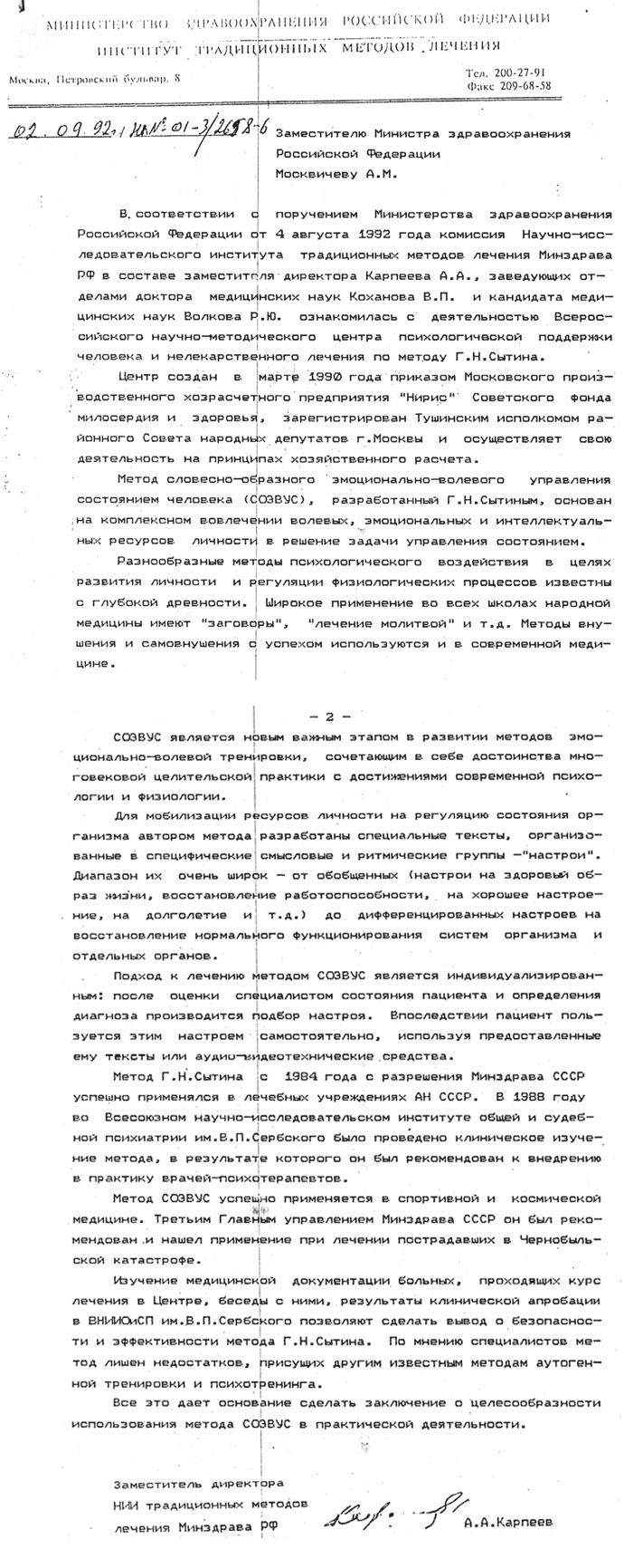 НИИ традиционных методов. Минздрав РФ, 1992 г. - "